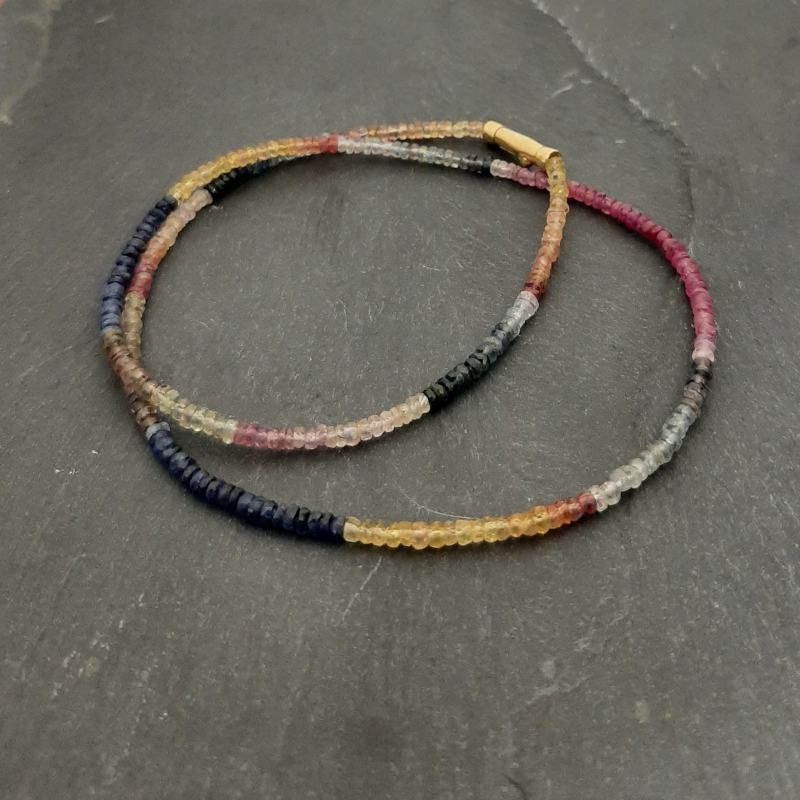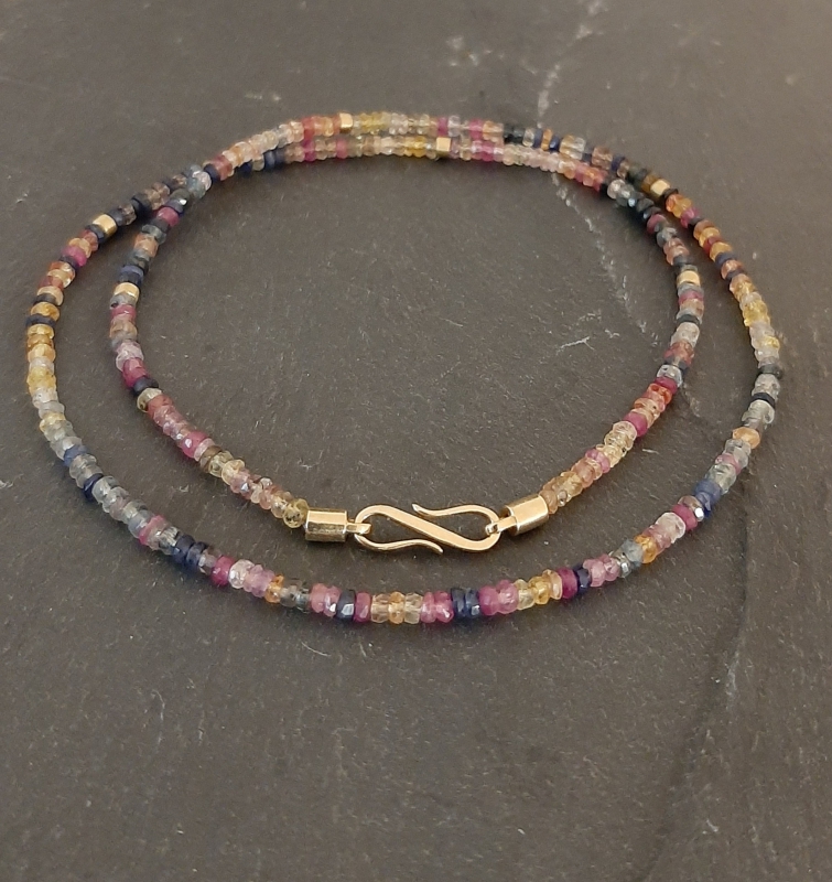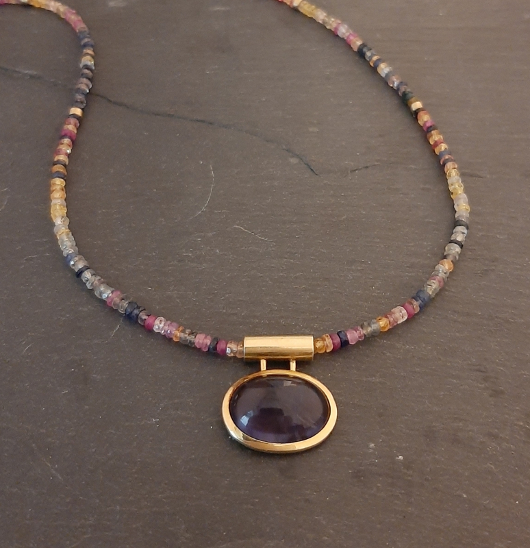 Safirkette, 750er Gold, handgeschmiedeter S-Haken und Iolith-Anhänger