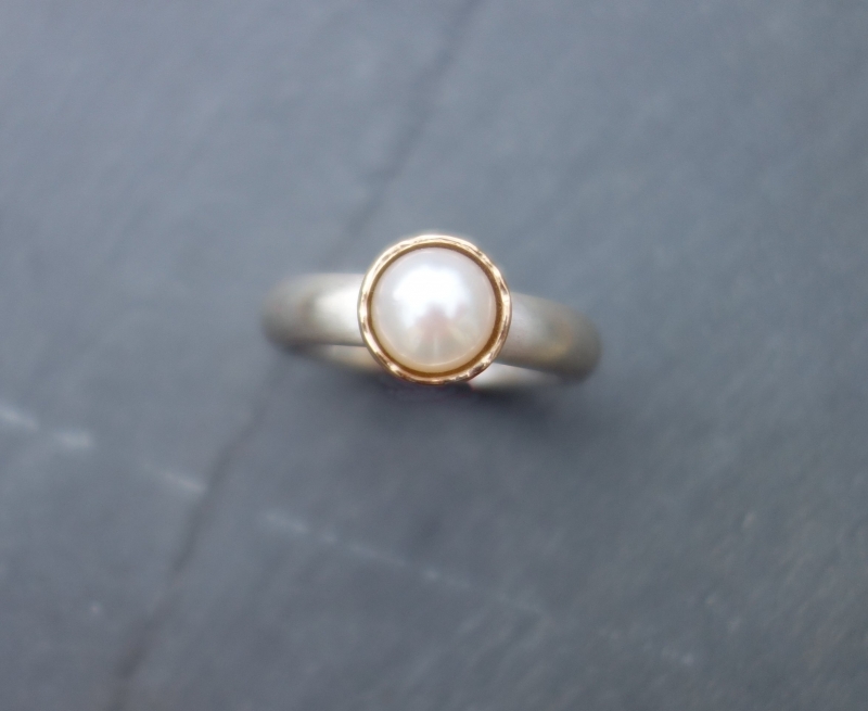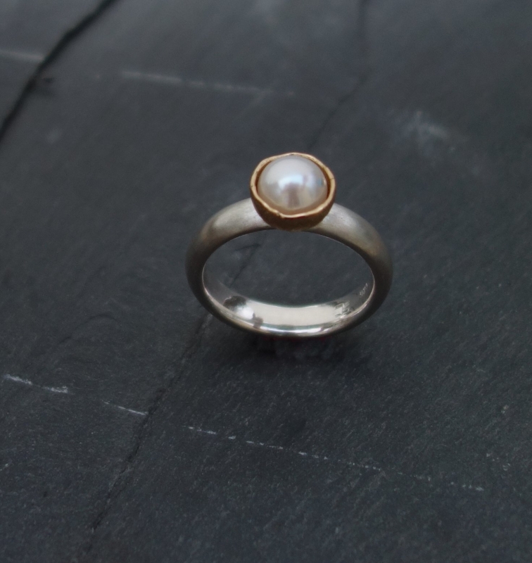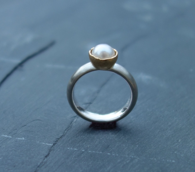Silber mit Zuchtperle geschmiedet. Auch ohne Perle möglich